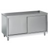 Réalisation en inox AISI 441 épaisseur 10/10 Top renforcé et insonorisé Bords tombés de 40 mm Piètement tube carré de 40 x 40 en inox AISI 441 avec pieds inox réglables 3 bords tombés avec dosseret arrière de 85 mm Avec ou sans étagères Profondeur 600 ou 700 mm.